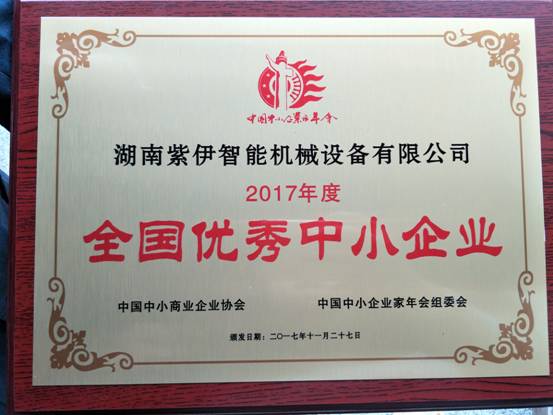 核心提示 : 湖南紫伊智能機械設備有限公司榮獲“2017年度 全國優(yōu)秀中小企業(yè)”榮譽稱號
